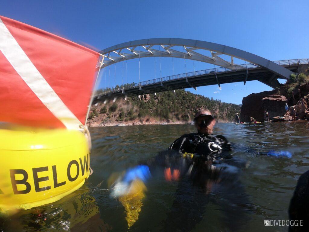 There is a bit of boat traffic in the summer and fishermen along the sides, so bring a buoy, cutting tool and realize the risks associated with surfacing. There are also cliff jumpers right under the bridge, watch your ascent. A little bit of current may exist, check conditions before you go in and start upstream as with any current dive. The thermocline can be jarring, dress accordingly if you plan to go deep, and bring a torch – you will need it.