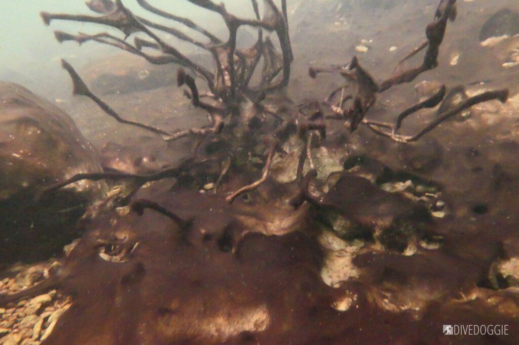 There are some factors on this dive site that can offer a challenge: your own buoyancy, an excessive amount of fishing line with sharp hooks, cold water, disappearing light at 40′ and the hum of the turbines. Some divers will find the chest-pounding drone of the dam unsettling as they feel the vibration in their chest. The sound can also disorient divers, making this a more risky dive than even just a few 100 feet around the point.