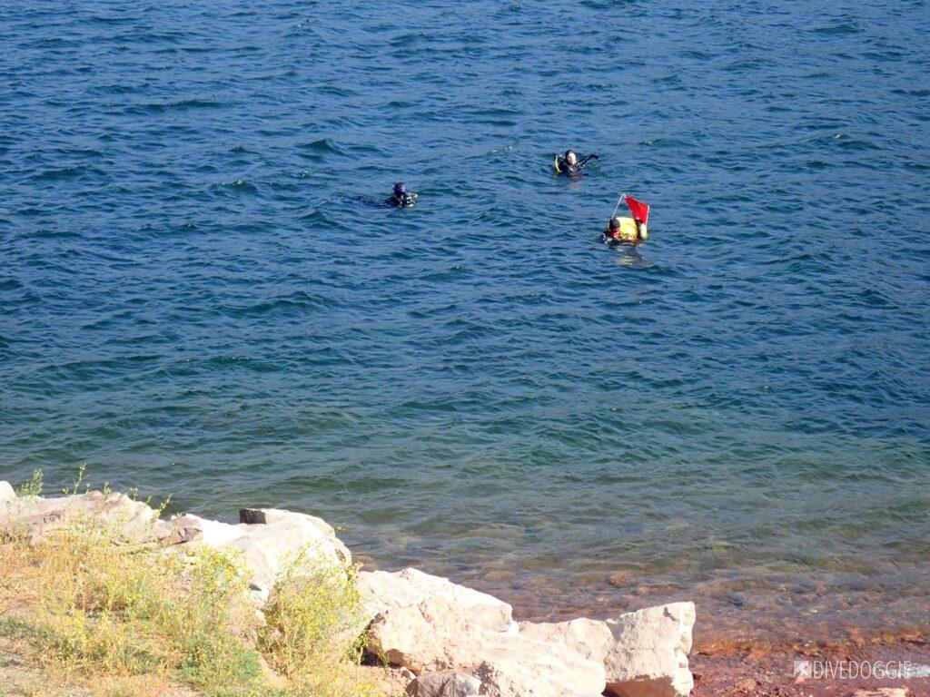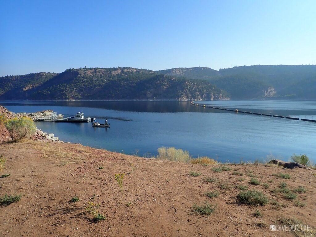 Shore access. Picnic tables, shade, and paved walks make the shore access descent for hanging out for a day of diving. You cannot dive “on” the dam, nor “near” the dam, but there is plenty of opportunity for a great wall dive on the east side of the point, and shallower relaxing diving on the west side of the point.