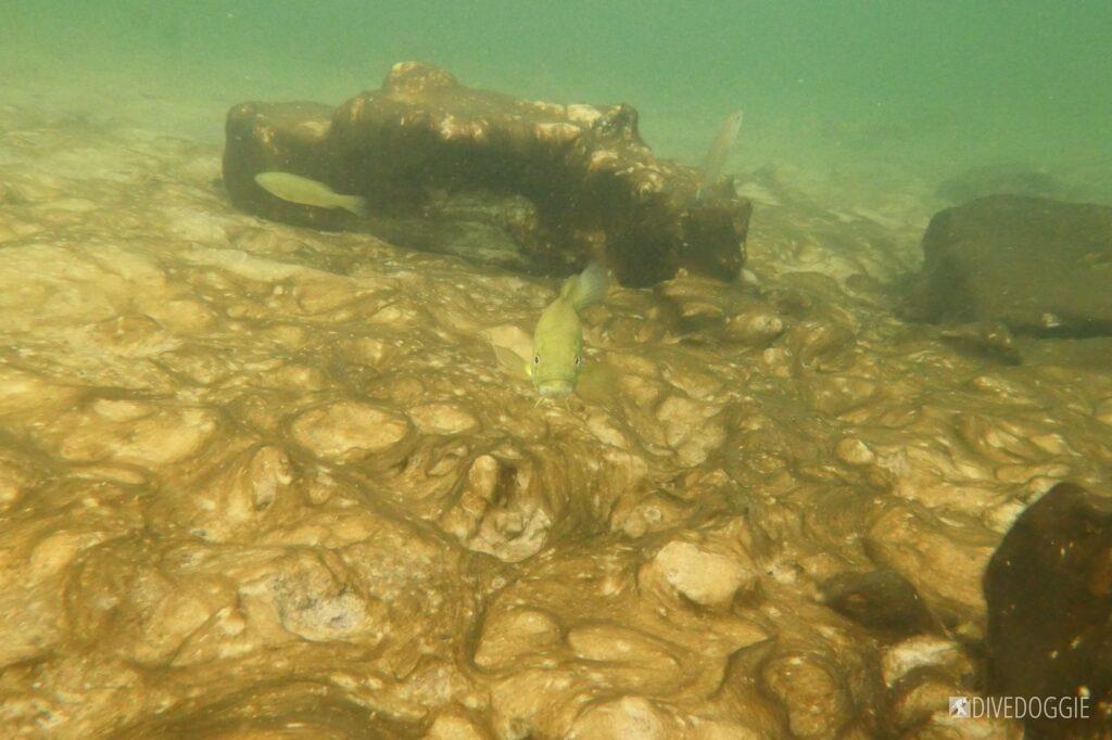 Shallow diving with a bit of protection from boats exists to the west side of the point. You can find fish, things people drop from boats, and a variety of other random things. Some of the features include rock formations, “hills”, and other interesting topography that change as the water levels fluctuate.