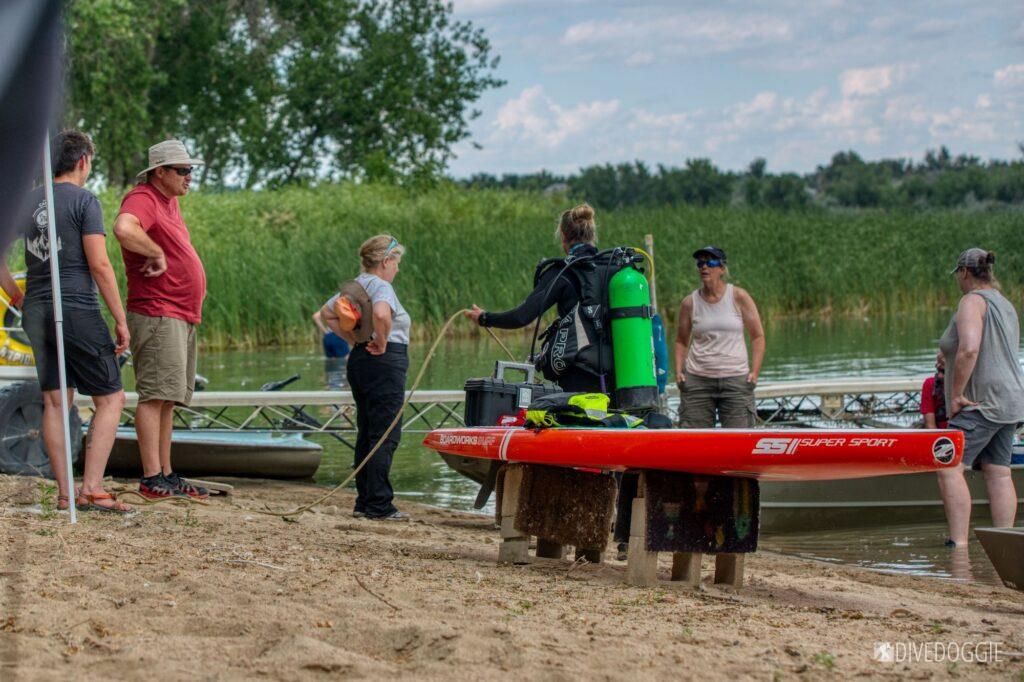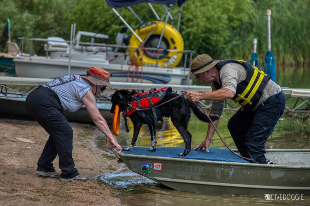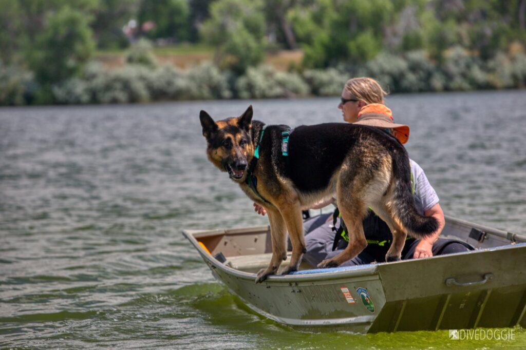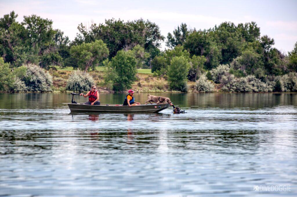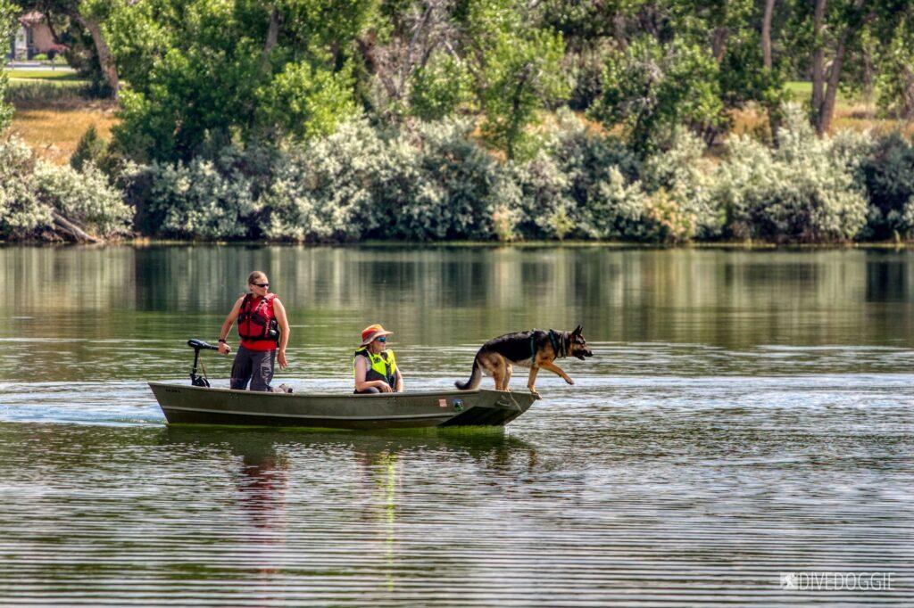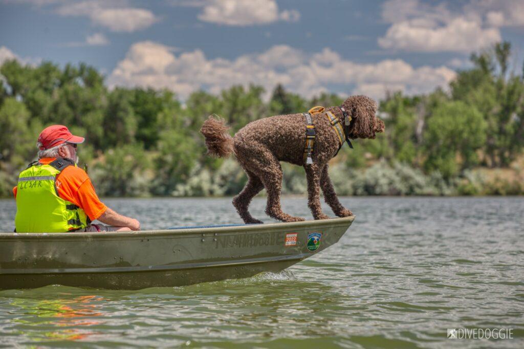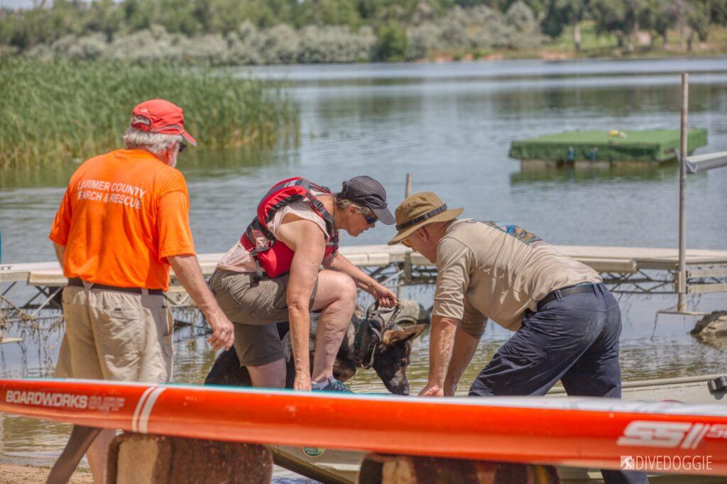 A dog training day with Larimer County Search and Rescue proved to be the perfect combination of all the good things in life. Several dogs from Colorado brought the energy to party, along with their talented handlers, boat captains and training leaders. Volunteer scuba divers assisted in the training by rewarding the dogs with their favorite toys and treats once the divers were “found”.
