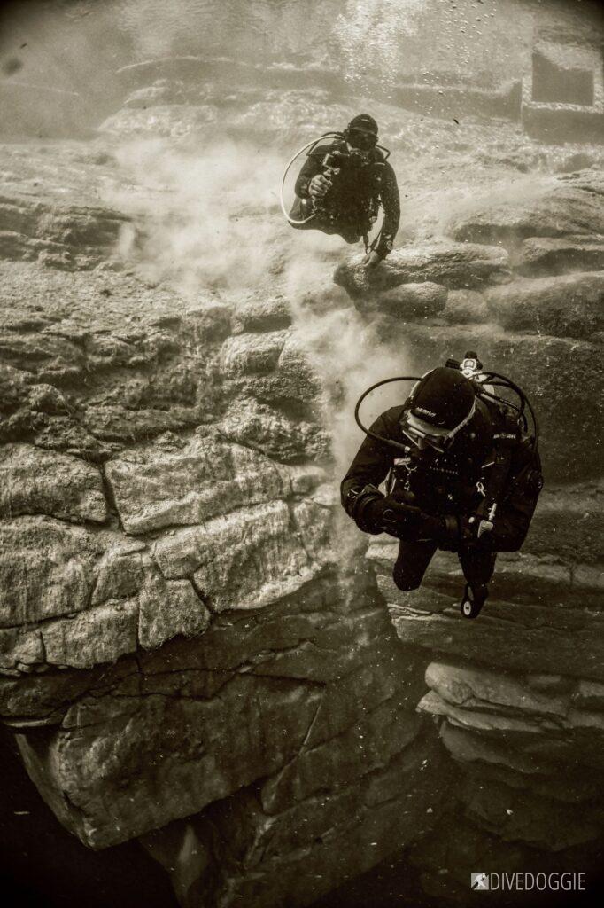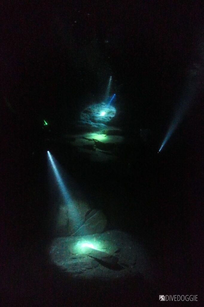 This dive site brings natural elements and challenging lighting conditions together, yet offers striking sights both above and below the surface. The morning light paints portions of the rock walls, leaving others in deep shadow. The afternoon light changes to harsh light and strong silhouettes. Lastly, night brings an opportunity for testing camera settings in extreme conditions to ask the question: what is the max ISO?