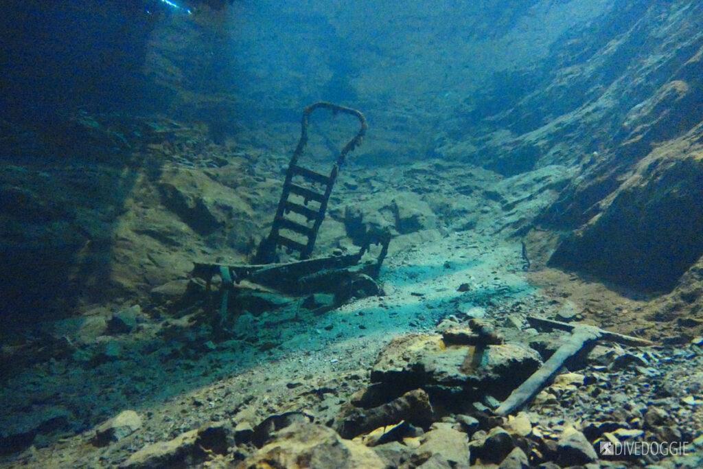 Bonne Terre Mine is an abandoned lead mine complete with mining tools, restrictions, ore carts and tracks, a movie prop from a 1990s movie, and a locomotive. Additionally, there is a functional pontoon boat inside the mine, giving tours of the mine on the surface. How did it get there? By crane, in a mine chute. What’s not to love here in Bonne Terre, Mo?