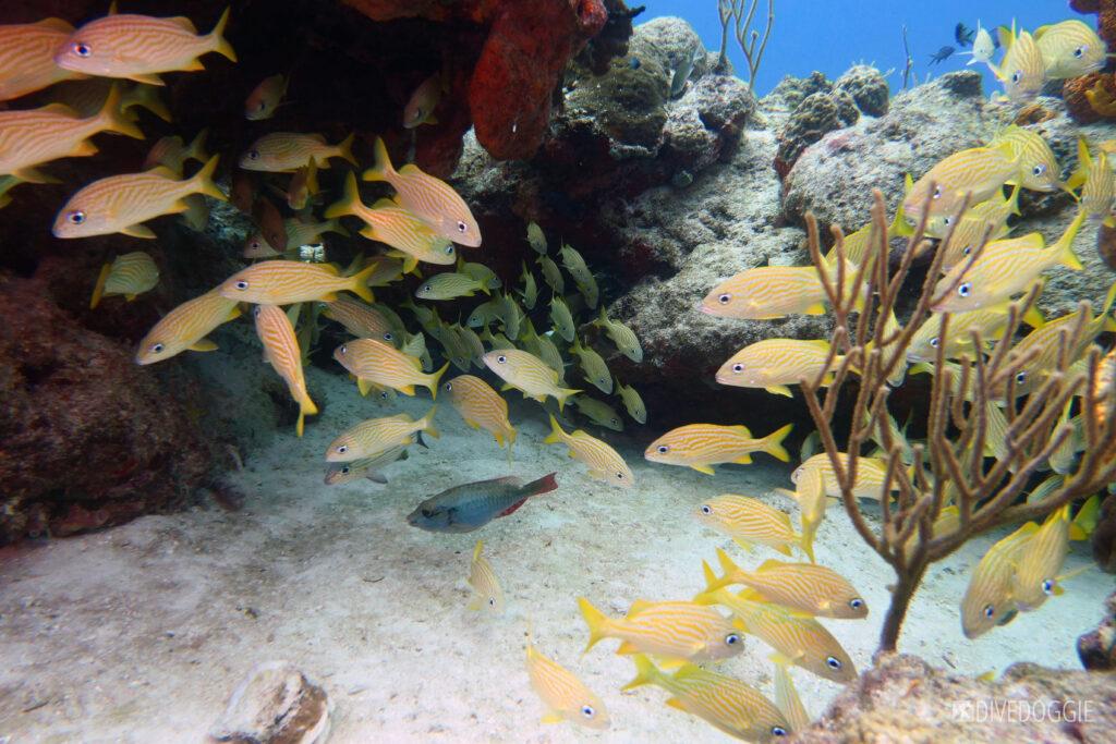 Tropical setting, crystal clear water, lazy current and more color than a box of crayons summarizes Cozumel in a nutshell. Flying Gurnards, juvenile Drum, Splendid Toadfish, swim throughs, white sand with sea stars and octopus can be seen in this glorious paradise.